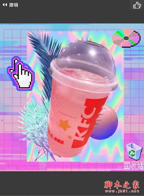 4、选择图形包里的「蒸汽波」,往上堆就行了,你会发现你放什么都不会挡住杯子