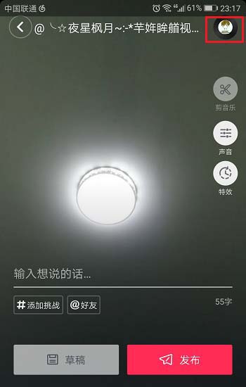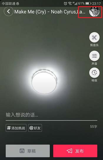 5、回到发布界面可以看到头像已经变成音乐头像了,如下图所示: