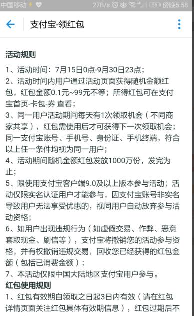 今天我们就来详细介绍一下支付宝之专属红包活动规则的详细介绍,请看下文详细介绍。
