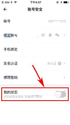 2)接着进入【账号与安全】,最后再关闭【我的状态】即可。(如下图)