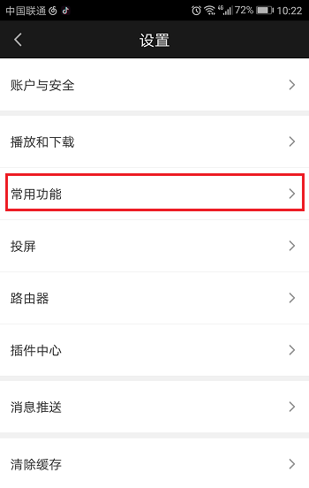 2、进去视频设置界面之后,选择常用功能,如下图所示: