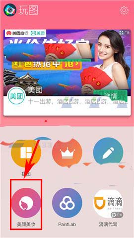1)点开玩图APP,首先点击首页中的【美颜美妆】,然后选择界面中的【录制】图标;(如下图)