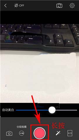 2)接着点击【持续拍摄】以转换至“分段拍摄”,随后【长按】屏幕中的红色圆形按钮进行录制;(如下图)
