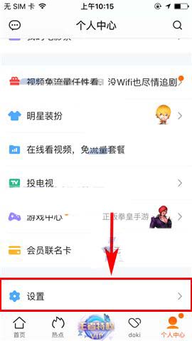 1)打开腾讯视频APP,首先进入首页右下角的【个人中心】,然后上划界面点击【设置】一栏;(如下图)