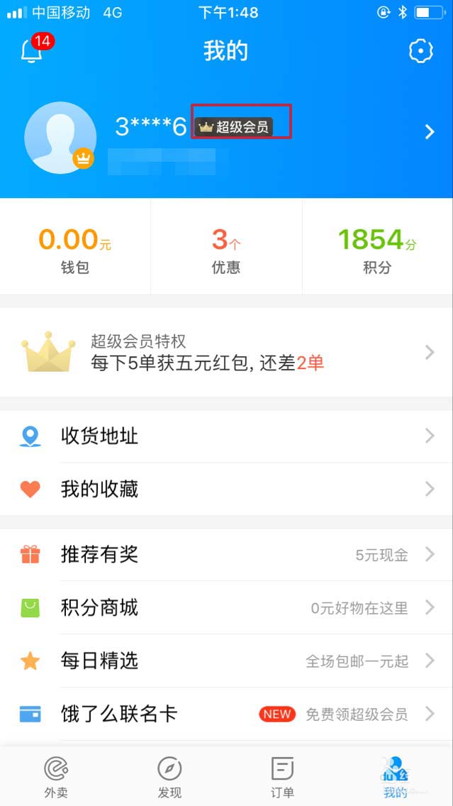 2、打开“饿了么”APP后,在右下角找到“我的”进入“我的”界面。“我的”正下方会出现超级会员的标签。