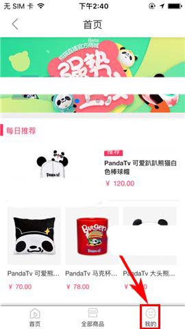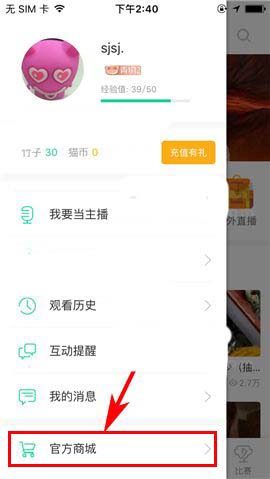 1)点开熊猫直播APP,首先点击首界面左上角的个人用户头像,然后滑动新界面进入【官方商城】;(如下图)