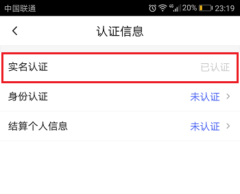 3、点击进去认证信息界面之后,可以看到是否实名认证,如下图所示是已经认证了