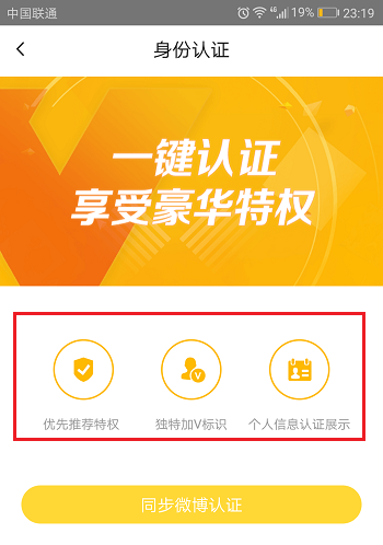 4、我们也可以进行身份认证,会享有优先推荐权,加V标识,个人信息展示等,如下图所示: