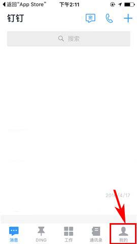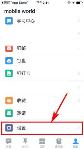 1)点开钉钉APP,首先点击“消息”界面右下角处的【我的】,然后上划界面进入【设置】;(如下图)
