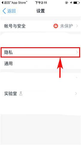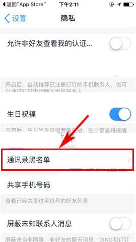 2)接着点击【隐私】,随后再进入【通讯录名单】;(如下图)