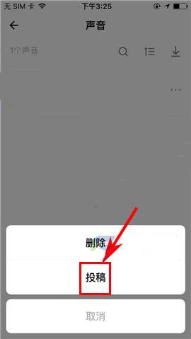 2)接着选择所要投稿的声音,点击其后方的【...】图标,随后再点击【投稿】操作项;(如下图)