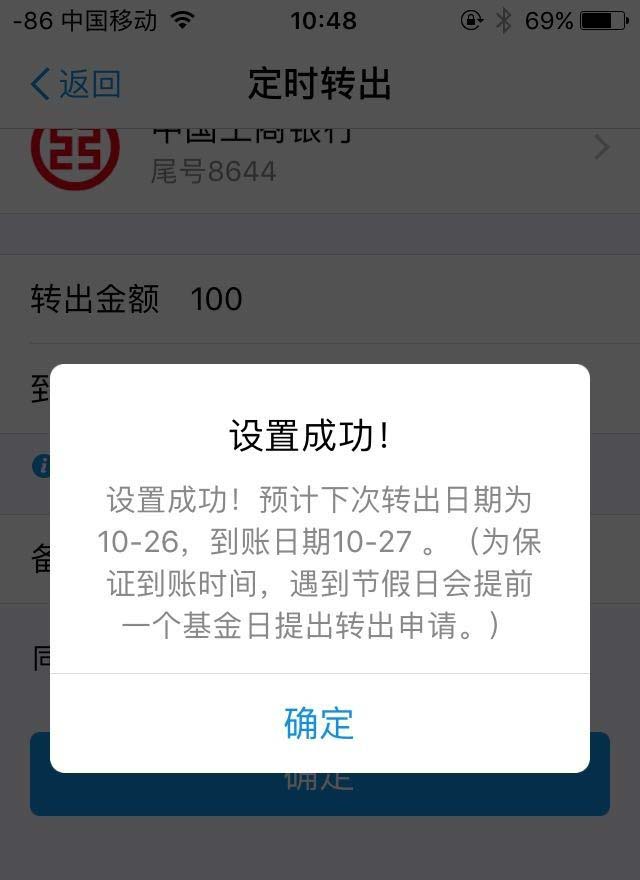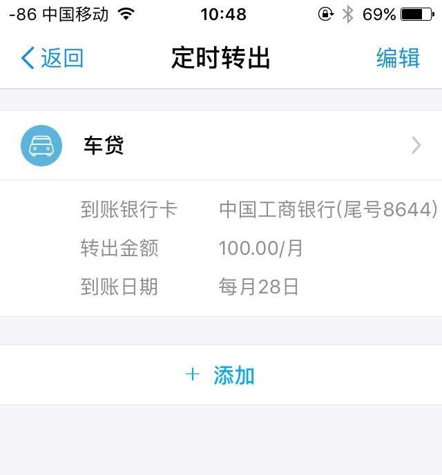 7、设置成功后可以在【定时转出】界面中看到刚才设置的还款事项。