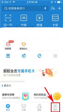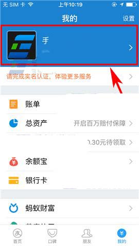 1)打开支付宝APP,首先点击首页右下角的【我的】,然后再点击界面中的个人昵称;(如下图)