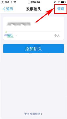 2)随后进入【我的发票抬头】,接着再点击【管理】;(如下图)