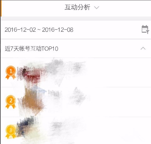 7、查看互动分析:在这里可以看到近七天内粉丝最活跃用户是谁,会有前十名的排行榜。