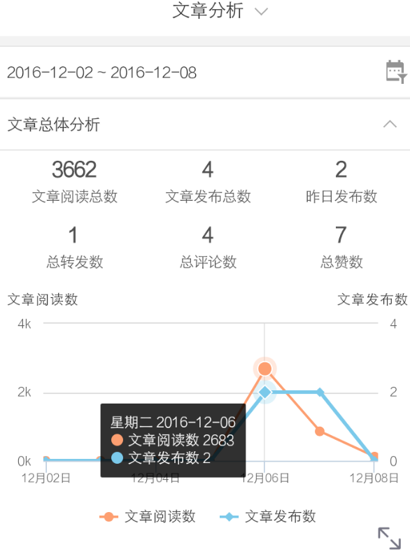 8、关于文章分析:这里可以查看到微博总阅读数、文章发布总数、总转发数、总评论数、总赞数,还可以对单篇文章进行单独的分析。