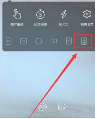 1、首先进入faceu激萌拍照页面,然后点击左上角的【...】图标,然后就会看到九宫格的图标,点击选择;