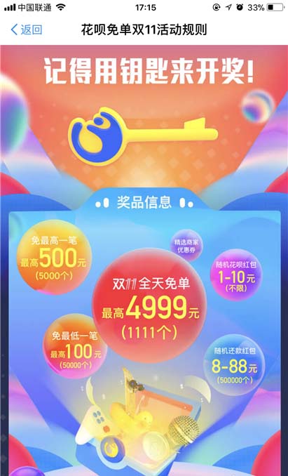 今年双十一使用花呗消费可以免单,但是需要我们自己去参与活动才有机会免单,下面我们就来看看参与方法。
