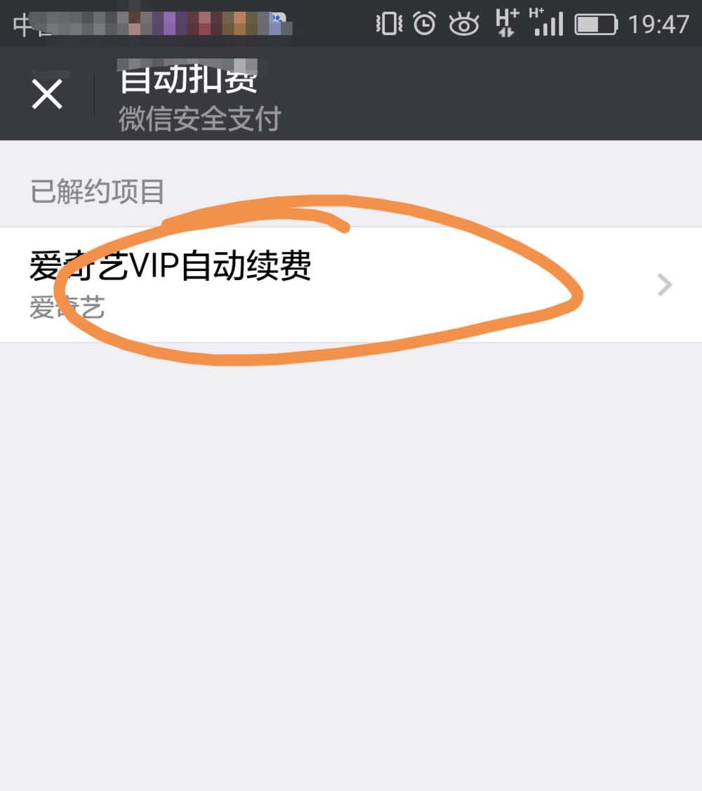 6、最后解约“爱奇艺VIP自动扣费”如图所示
