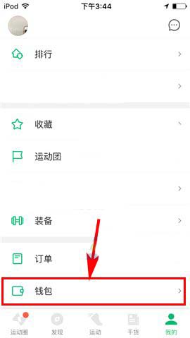 1)打开咕咚运动APP,首先点击首页右下角的【我的】,随后上划界面进入【钱包】;(如下图)