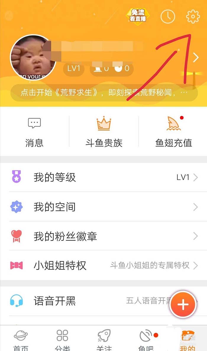 3、在个人中心页面点击右上角的小齿轮(设置)