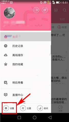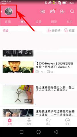 1)点开哔哩哔哩动画APP,首先点击首页左上角处的个人用户头像,然后进入【设置】;(如下图)