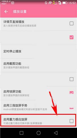 2)接着选择【播放设置】,最后再关闭【启用重力感应旋屏】功能即可。(如下图)