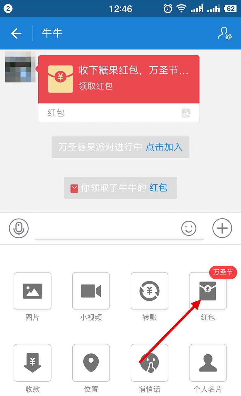 1、今天无意间,收到一万圣节主题红包,我也想给好友回一个,应该怎样操作呢?