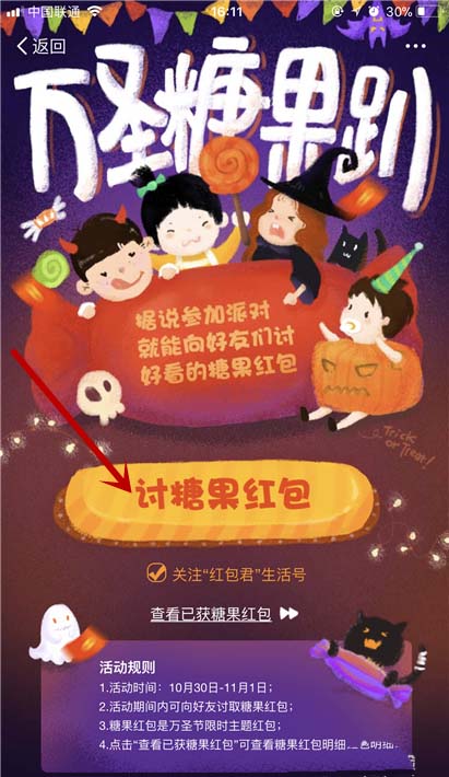 3、在万圣节期间,我们会看到界面多了一个万圣糖果趴,我们点击这个按钮。