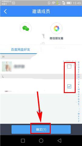 2)随后点击“共享成员”一栏中的【+】,最后在勾选所要共享文件夹的好友,点击【确定】即可。(如下图)
