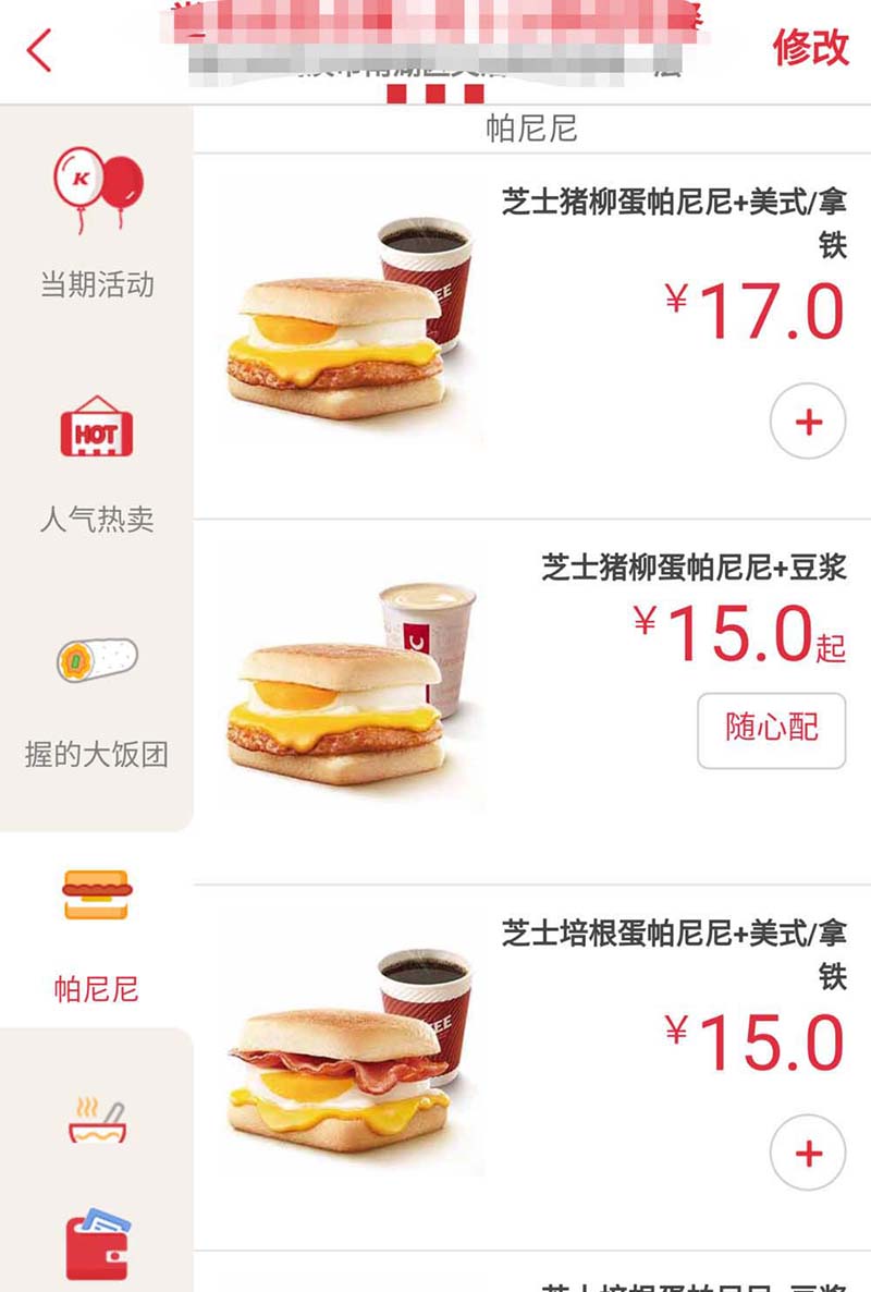 3、进入菜单,会有各种不同的分类,产品名称,图片,价格也都会标注清楚。加几块钱可以替换套餐中的那些品种,点餐甚至比在排队区更加方便。