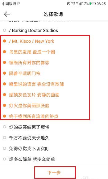 5、点击之后,勾选想要下载的歌词,点击下一步,如下图所示: