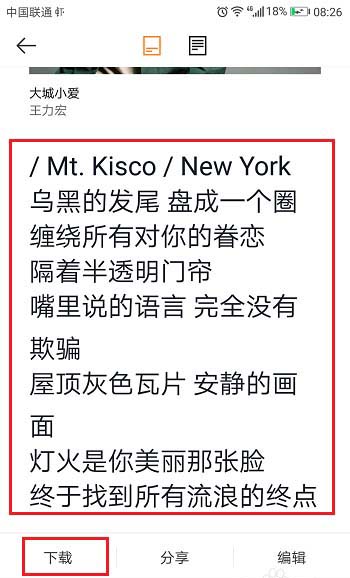 6、生成歌词界面之后,点击下方的下载,就成功下载了歌曲歌词,如下图所示: