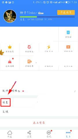 1)首先我们打开百度云APP点击右下角的【更多】进入到个人界面,然后再点击进入【设置】功能。(如下图)