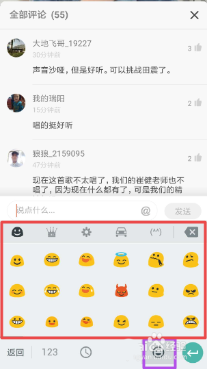 6、也可以点一下表情,可看到很多的表情图标,可根据需要选择输入。