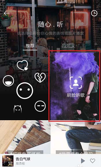 6、我们也可以进行随心听,刷脸听歌,如下图所示: