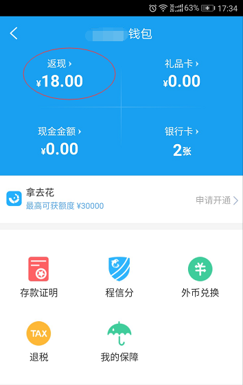 3、点击上图中的“返现”,如果这是金额显示是0,这里是不能点击的。点击后页面跳转如下截图所示。