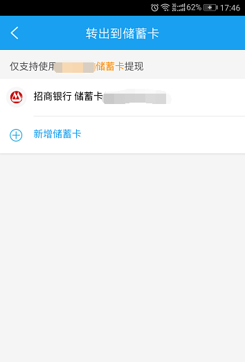 第三种:可以直接转出到储蓄卡。这种是我最喜欢的,返现的金额百分百转出到绑定的储蓄卡上。不过仅支持提现到本人的储蓄卡。比如18元的返现金额,申请转出的话,大概3分钟左右,18元就入账了。速度很快,而且是实打实的现金,随便我们怎么使用都可以。