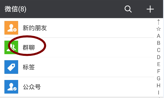 4、在通讯录中当然都是我们所加的好友,公众号等,在最上方有个“标签”功能,我们点击它,如图