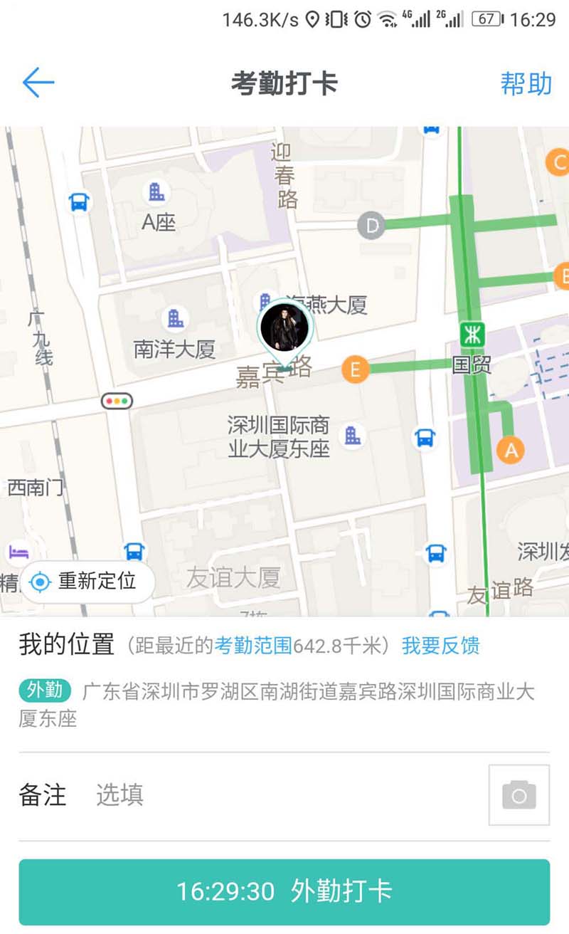 6、点击打卡按钮可以查看定位是否正确,点击下方打卡即可