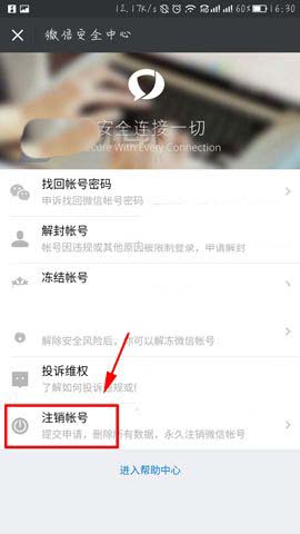 2)接着再点击进入【微信安全中心】,然后点击【注销账号】这里放心点击,账号不是这么好注销的!(如下图)