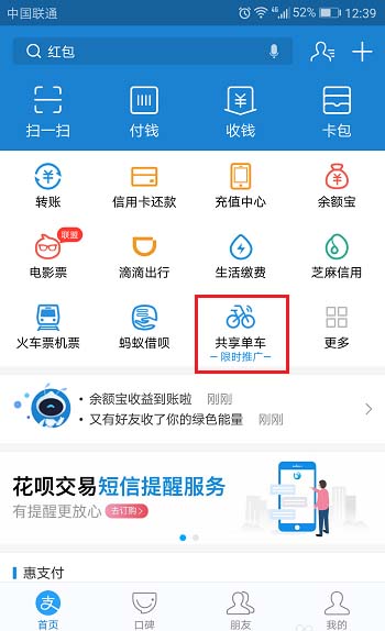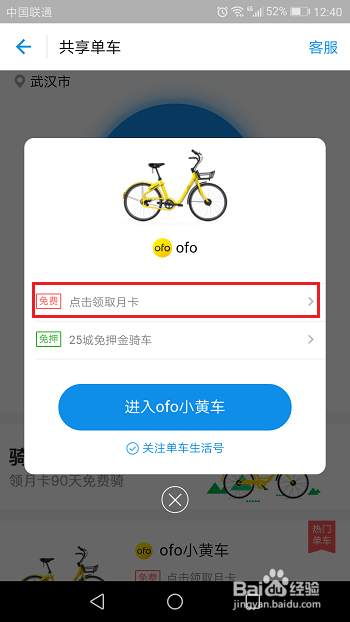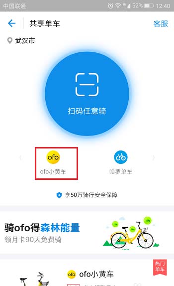 2、进去共享单车界面之后,选择如下图所示: