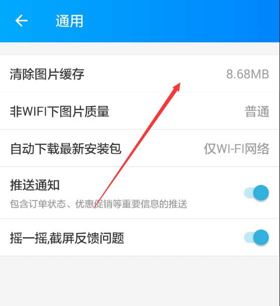 5、在饿了么通用界面里就可以看到【清除图片缓存】选项,可以看到图片的缓存大小,直接点击,如下图所示。