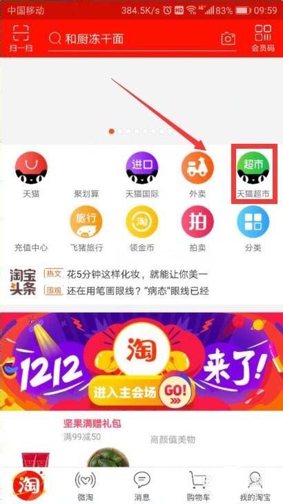 1、打开手机淘宝APP中的天猫超市