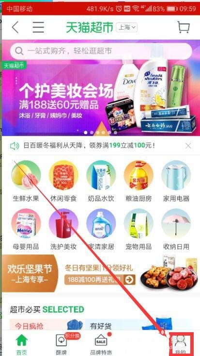 2、找到天猫超市中的“我的”