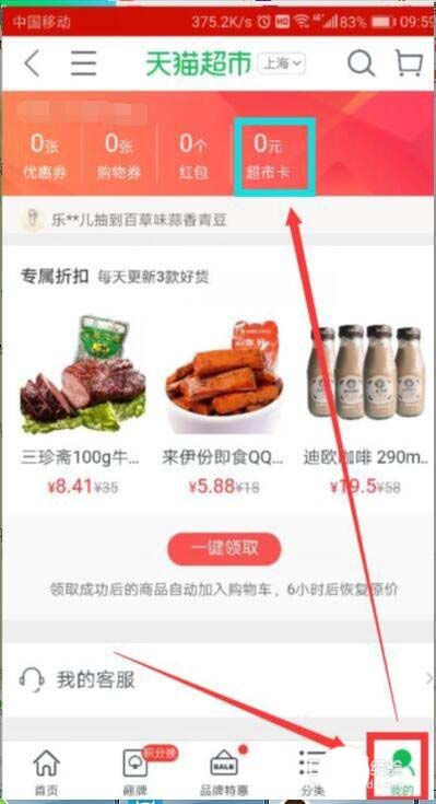 3、在“我的”中找到“超市卡