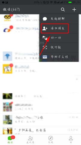 1)我们打开微信来到聊天界面点击【添加朋友】选项,来到搜索界面后点击下面的【公众号】服务。(如下图)
