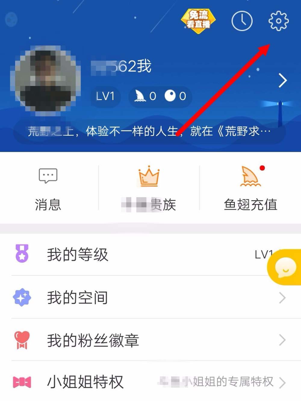 4、在我的界面选择右上角的齿轮,也就是系统的设置。