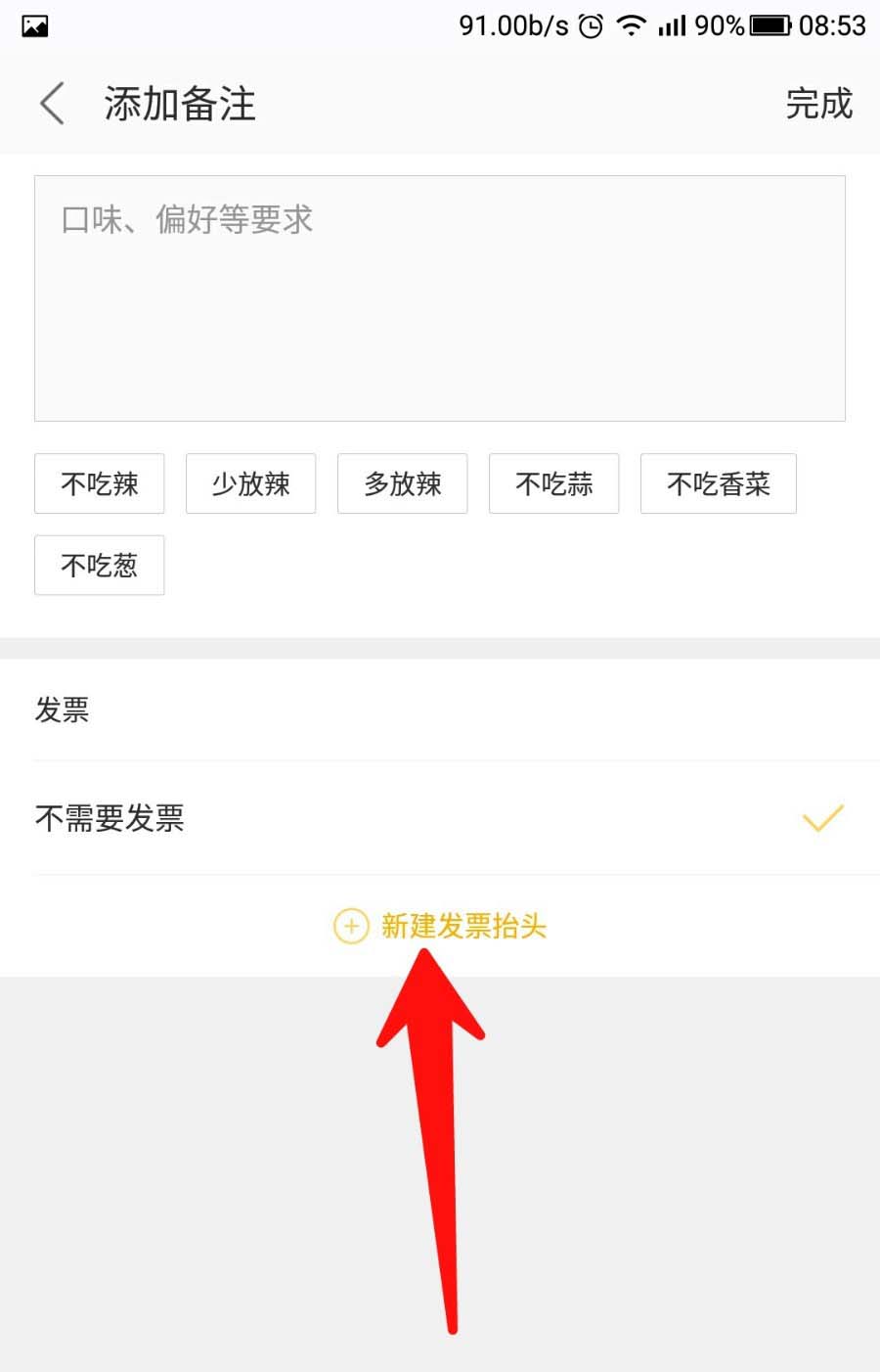 5、一般大的连锁之类的店会支持开发票。点击图示位置“新建发票抬头”。