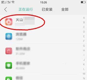 4、在“正在运行”或者“已安装”里面找到“火山”